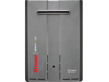 Rinnai’s most efficient continuous flow gas hot water system. Rinnai INFINITY EF condensing continuous flow gas water heaters effectively capture waste heat from the flue gas through the use of a secondary heat exchanger to help heat the water with less energy.