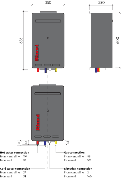 * Rinnai recommend 1.5 m to give enough clearance for the pipe work, and to safely expel flue gases.