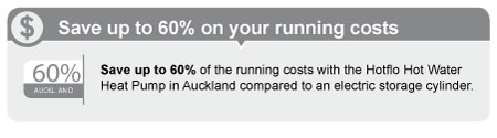 With an outside air temperature of 20 °C, the Hotflo Hot Water Heat Pump delivers 3 kW of heat output for every 1 kW used, making it 300% efficient