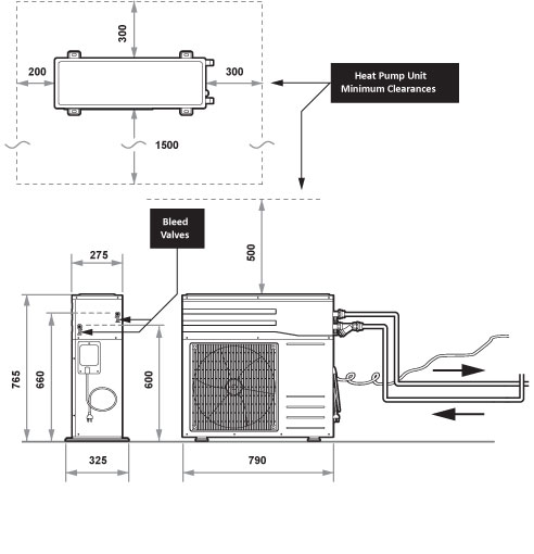 Distance between the heat pump and storage tank