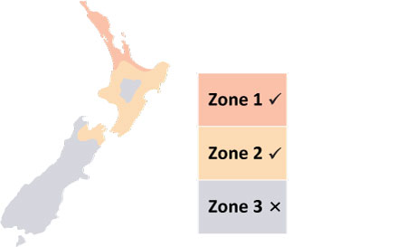 • NZ geographical zones 1 and 2 only, refer map below